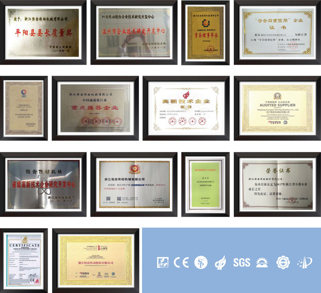 公司的主導(dǎo)產(chǎn)品有:ER、EK、EF、ES、EH/EB、EQ、EZ等12種系列產(chǎn)品,產(chǎn)品配套功率0.18~4000KW,近萬(wàn)種傳動(dòng)比,系列化的“恒齒”產(chǎn)品供客戶選擇。通過(guò)了ISO9001質(zhì)量管理體系、ISO14001環(huán)境管理體系、ISO45001:2018職業(yè)健康安全管理體系和歐盟CE認(rèn)證。公司堅(jiān)持科技創(chuàng)新,具有“省級(jí)高新技術(shù)企業(yè)研究開發(fā)中心”,在上海設(shè)立開發(fā)中心,致力于國(guó)際、國(guó)內(nèi)減速機(jī)設(shè)備的研制、開發(fā)和數(shù)字化設(shè)計(jì),目前取得8項(xiàng)發(fā)明專利,56項(xiàng)實(shí)用新型專利。公司作為中國(guó)減速機(jī)標(biāo)準(zhǔn)化委員會(huì)委員單位,獲評(píng)為“國(guó)家星火計(jì)劃實(shí)施單位”、“品字標(biāo)浙江制造”、“浙江省科技型企業(yè)”、“浙江省專利示范企業(yè)”、 “中國(guó)行業(yè)減速機(jī)十大品牌”、“浙江省企業(yè)成長(zhǎng)之星”等榮譽(yù)稱號(hào)。